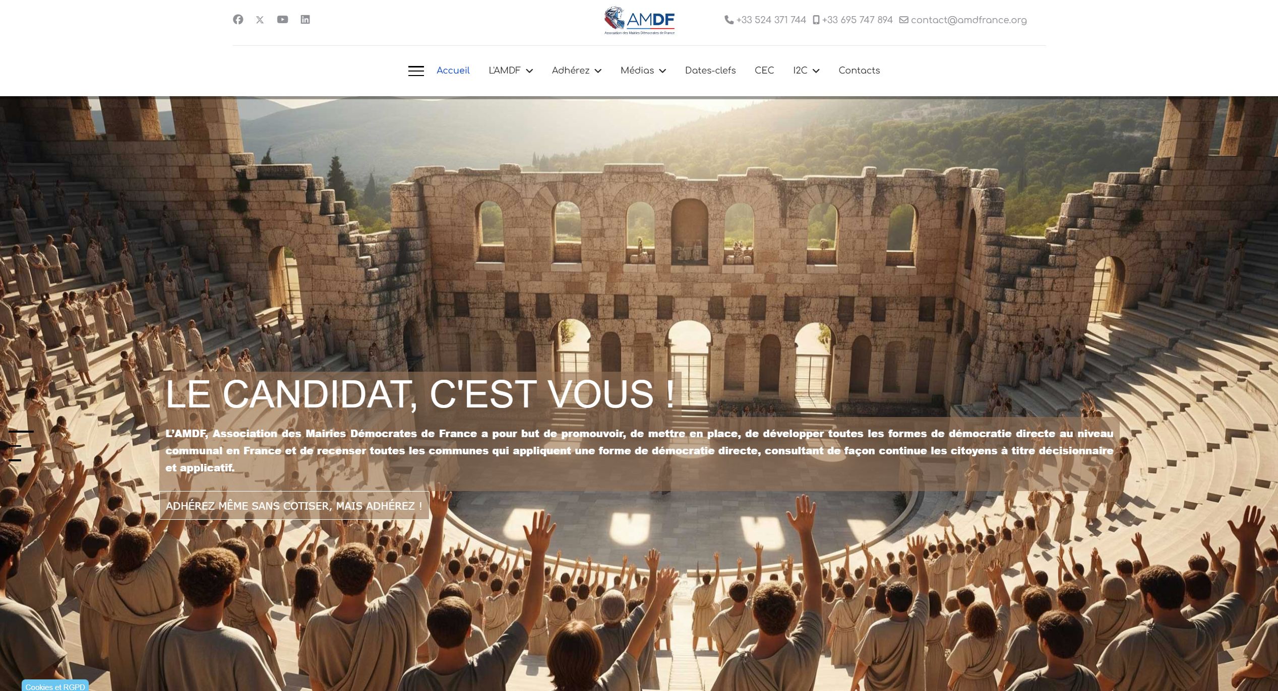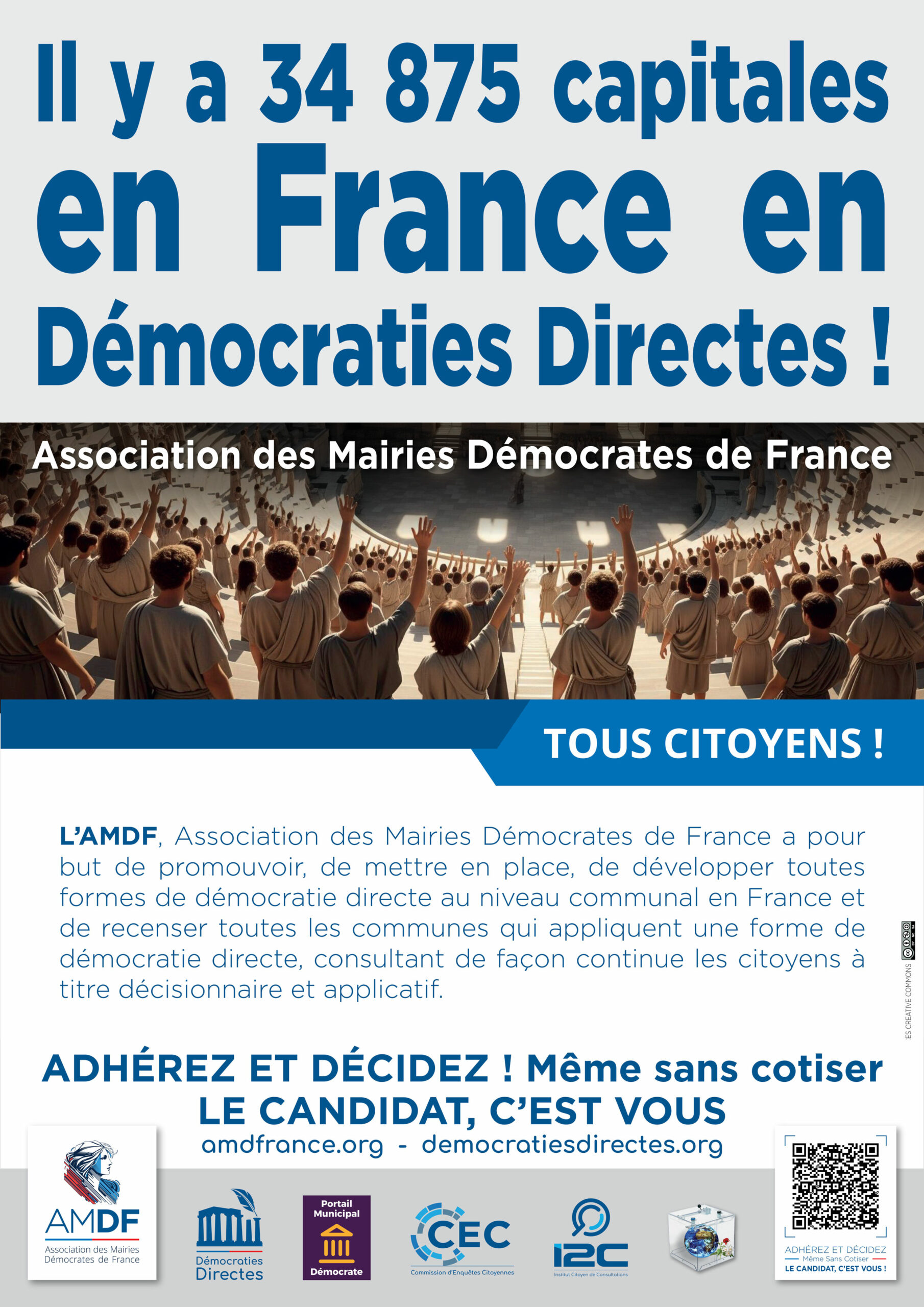 L’AMDF, Association des Mairies Démocrates de France, est une association de citoyens pour tous les citoyens qui veulent développer leur pouvoir politique intérieur par l’action et la mise en place d’une des formes de Démocraties Directes au niveau local. Elle est apartisane, accueille toutes les composantes citoyennes et politiques, débat de façon divergente, contradictoire et bienveillante, en prônant la protection de l’intégrité physique, psychique, financière et sociale.